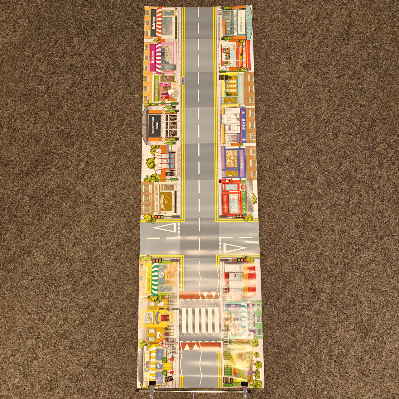Stellen Sie Ihren Schülern einfach eine Aufgabe wie zum Beispiel: „Bringe den Bee-Bot zur Post.“ (gerne auch auf englisch). Nun muss sich der Schüler die Spielplane genau ansehen und überlegen, welche Schritte er für den Bee-Bot oder Blue-Bot programmieren muss, um ihn genau dorthin gelangen zu lassen. Die Plane ist 150 x 45 cm groß und aus sehr robustem Kunststoff hergestellt.